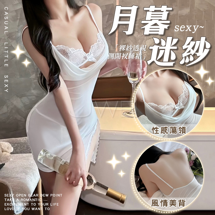 | 飄逸仙子.透視蕾絲網紗睡長裙