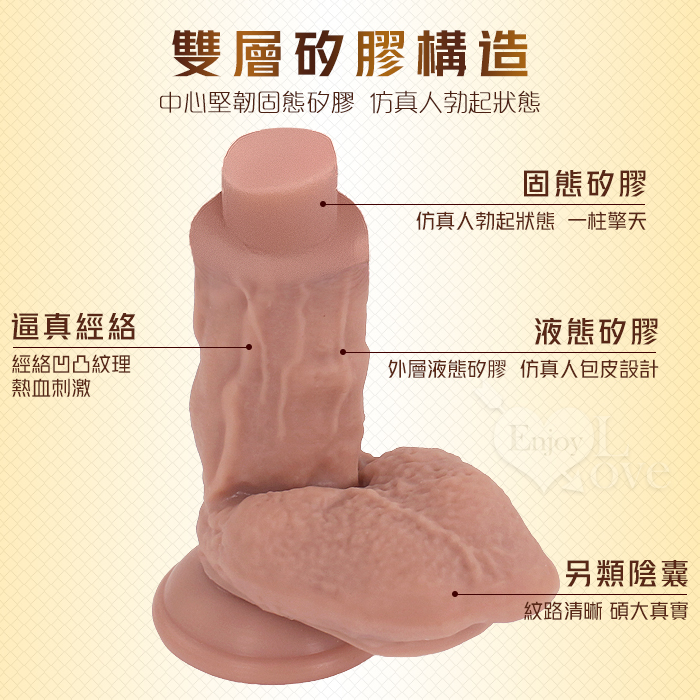 | 撸撸肉莖 ‧ 雙層液態硅膠吸盤陽具 撸/揉/捏/擰 任您把玩~﹝超仿真筋絡撸動皮紋﹞小號