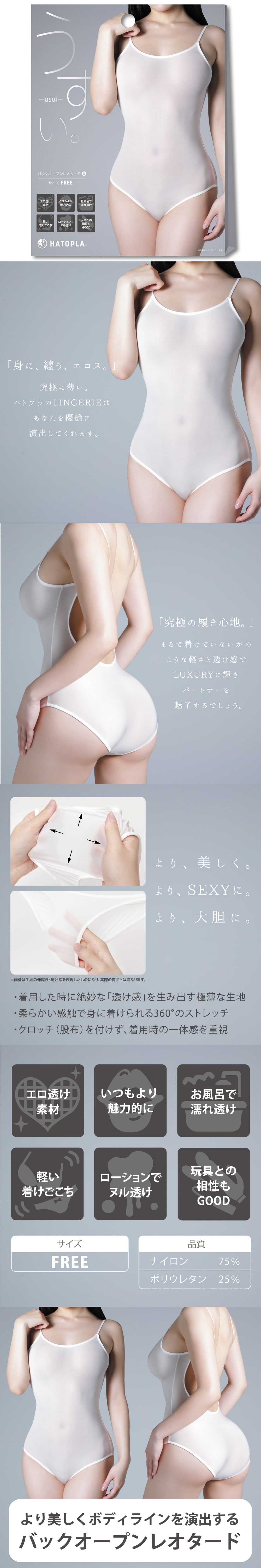 《薄。 -usui-後開緊身衣(白色)》