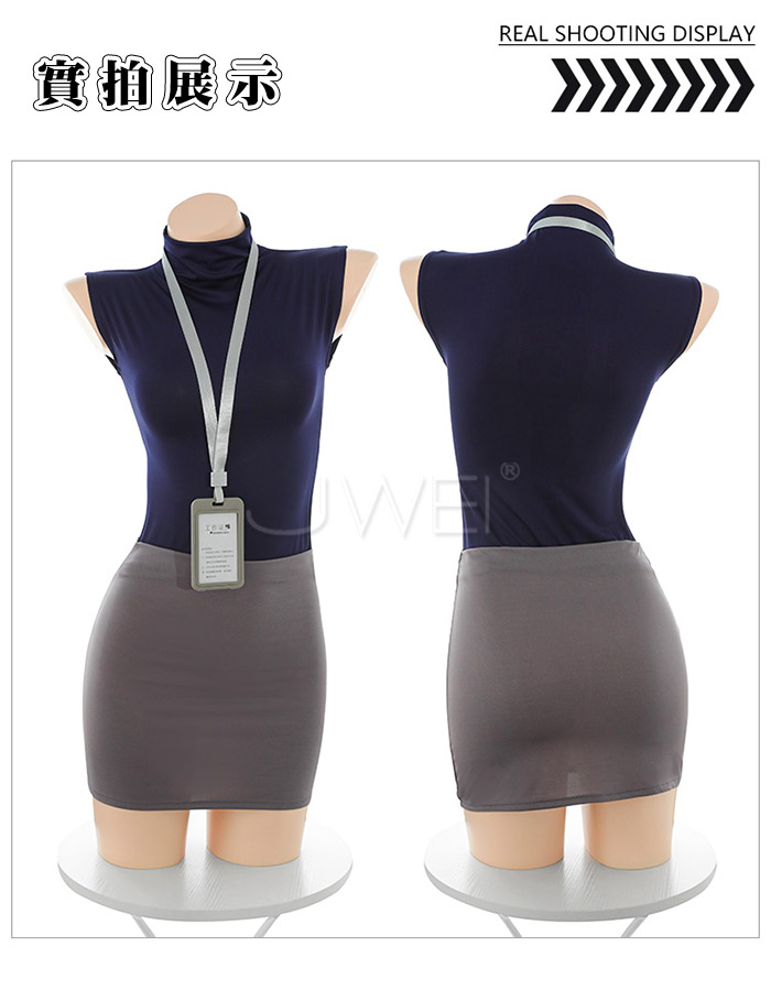►您現在的位置:首頁>情秘演繹.胸部可剪緊身包臀禁慾系OL秘書套裝-藍+灰【上衣+工牌+包臀裙+內褲】