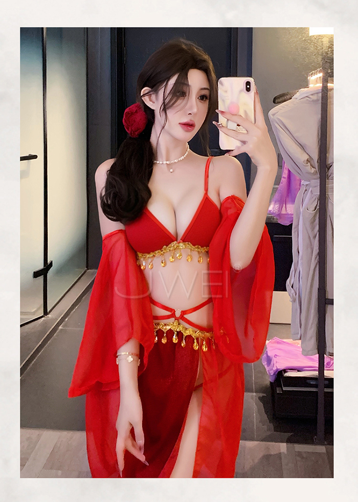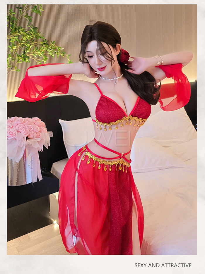 ►您現在的位置:首頁>情定西域.異域風情復古亮片拼接裙擺角色扮演服-紅色【胸罩+短裙+T褲+袖子*2】