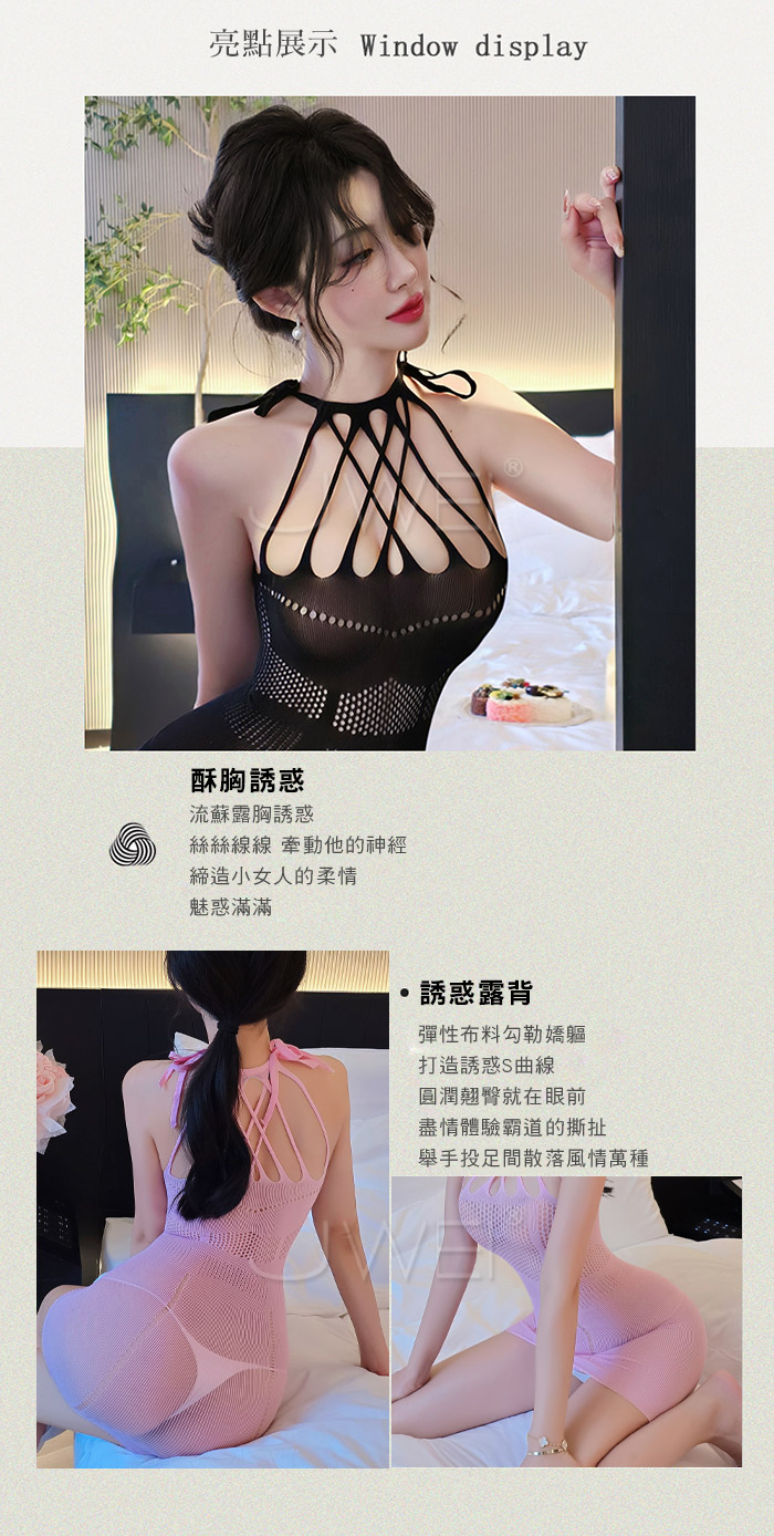 ►您現在的位置:首頁>爵色風華.誘惑流蘇交叉露胸美背鏤空包臀網衣【粉色】