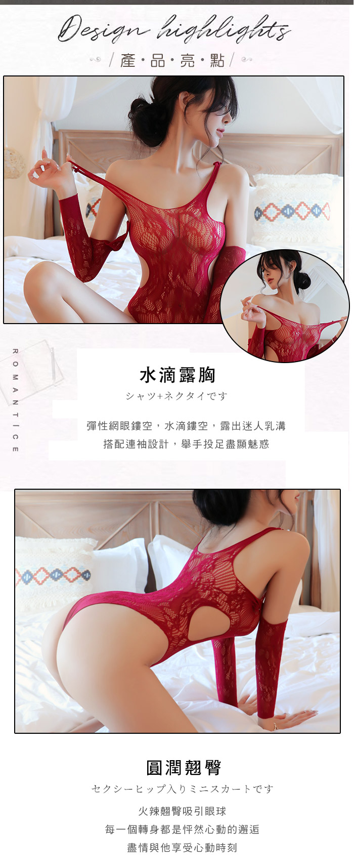 | 炙熱媚眼.水滴露胸巧露心機 高彈力大網眼吊襪連體性感貓裝