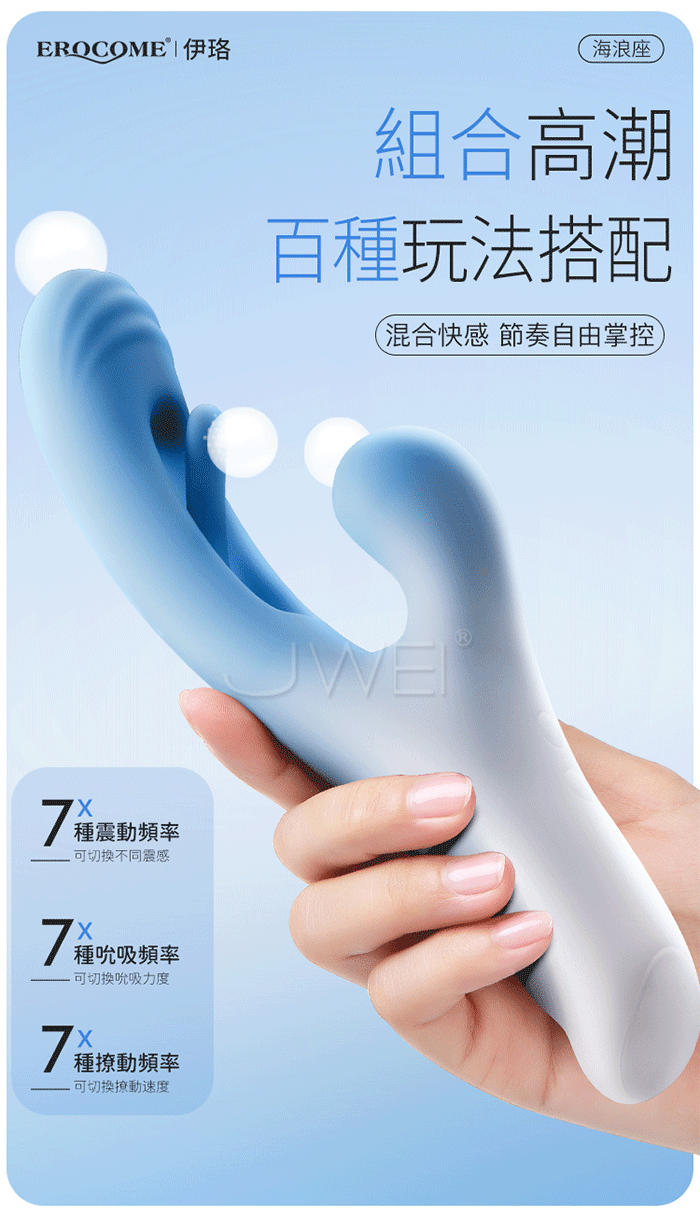 ►您現在的位置:首頁>EROCOME伊珞.OCEAN Wave 海浪座 7頻吸撩拍打震 三點齊爽摳G按摩棒