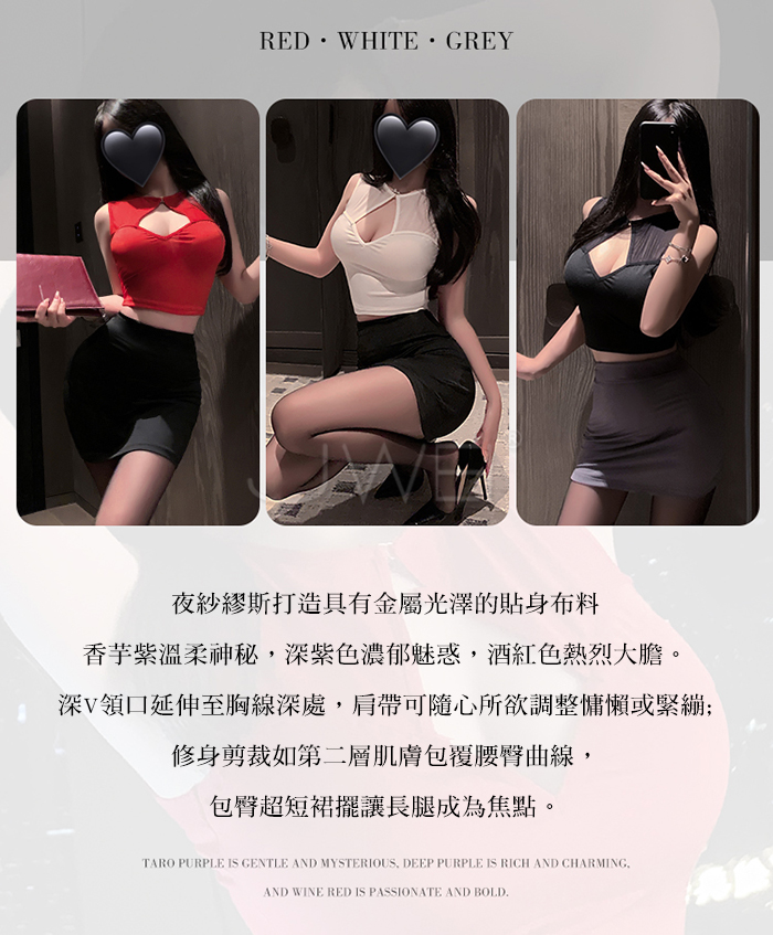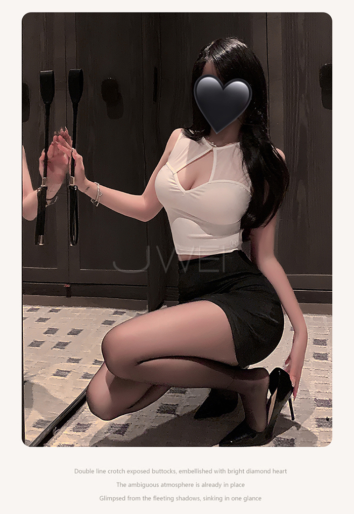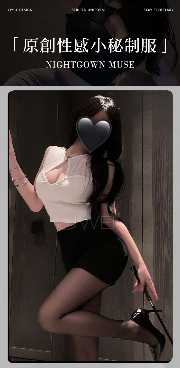 ►您現在的位置:首頁>繆斯秘語.胸前挖空露溝貼身包臀超短裙擺秘書裝【T褲+白上衣+黑裙】