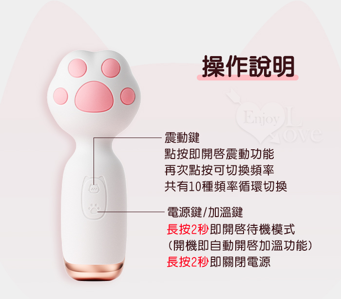 | ROSELEX 萌爪AV棒 ‧ 可愛小貓爪加溫震動棒-10頻震動陰蒂刺激調情自慰 - 白
