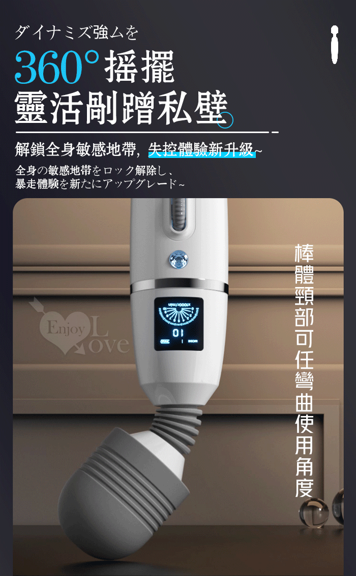 | ROSELEX 潮吹王AV棒 ‧ 女優を絕叫 液晶螢幕顯示9頻X8級速大頭強震按摩棒-灰白﹝智能加溫款﹞