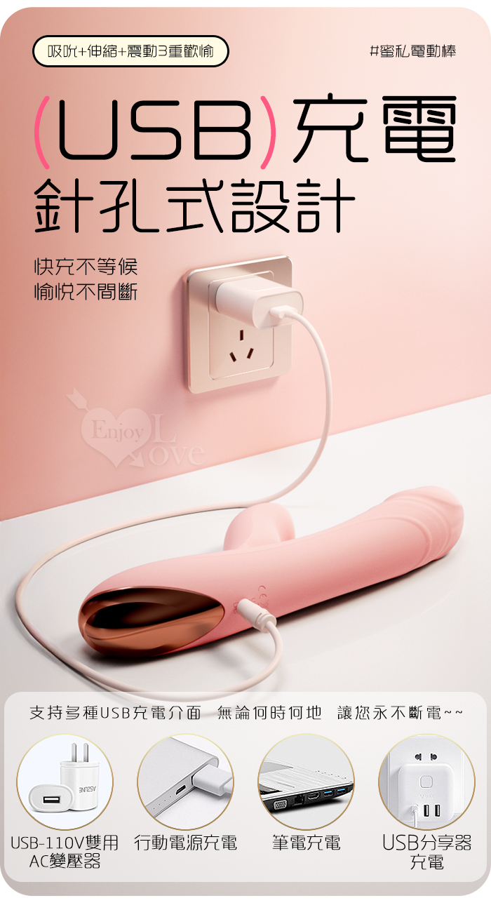 | ROSELEX 蜜私 ‧ 伸⦁震⦁吸 三重爆爽多功能按摩棒﹝10頻伸縮+震動/10頻吮舔動~內外同歡~滑順親膚矽膠﹞