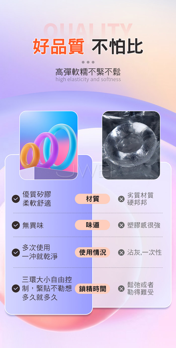 | 棒棒糖.繽紛糖果色系 三環久戰帶盒物理鎖精延時環【3入盒裝】