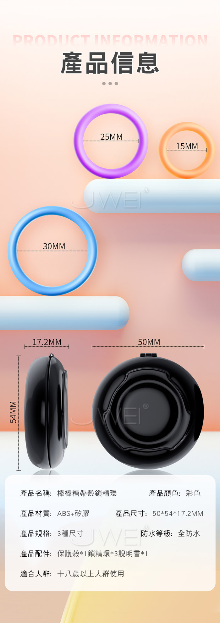 ►您現在的位置:首頁>棒棒糖.繽紛糖果色系 三環久戰帶盒物理鎖精延時環【3入盒裝】